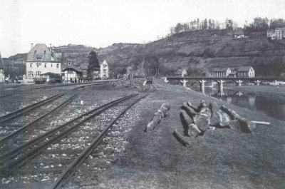 Das zerstörte Bahnhofsgelände nach der Möhnekatastrophe 1943