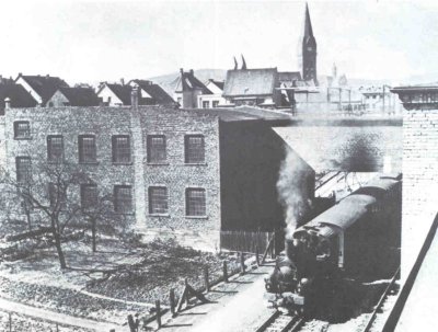 Dreischienige Gleisanlagen. Rechts der Güterbahnhof der RLK , links der der DB
