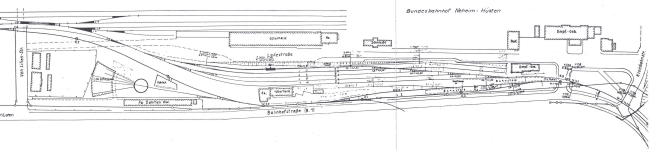 Die Gleisanlagen des Kleinbahnhofs um 1950
