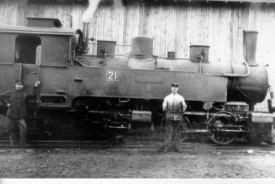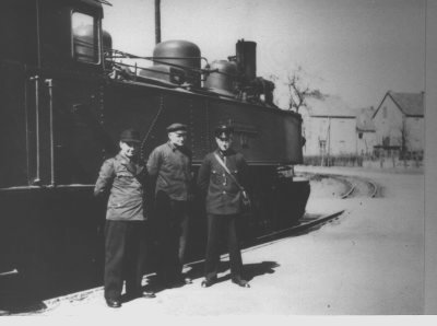 Lok 11 wurde von der Maschinenfabrik Karlsruhe als Ersatz für die im Krieg verlorenen Hohenzollern - Mallet beschafft. Hier sehen wir sie, mit Personal, im Bahnhof Niederense.