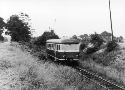 Dies ist ein Triebwagen mit einer ungewöhnlichen Geschichte. 1953 von der Flensburger Kreisbahn erworben, brannte er 1957 auf der fahrt von Werl nach Hamm aus und wurde von der Fa. Esselmann in Hamm mit einem neuen Aufbau versehen.